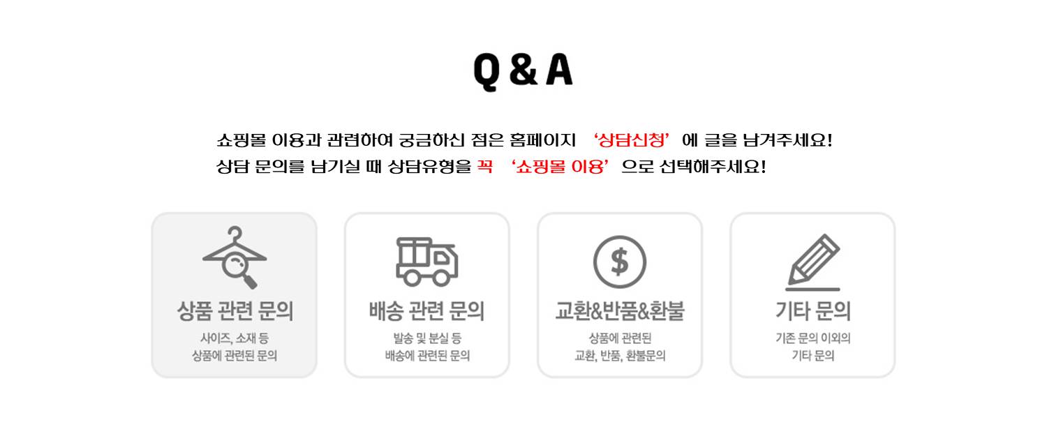 - 제품 불량이 아닌 경우, 반품 및 교환 배송비는 소비자 부담입니다. (교환 시 왕복비용 8,000원 입니다.)